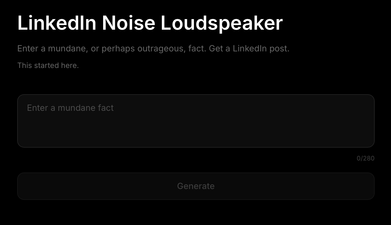 Deprived of Premier League action, it occurred to me that building a tool that converts mundane facts into LinkedIn posts might prove how noisy the world really is.